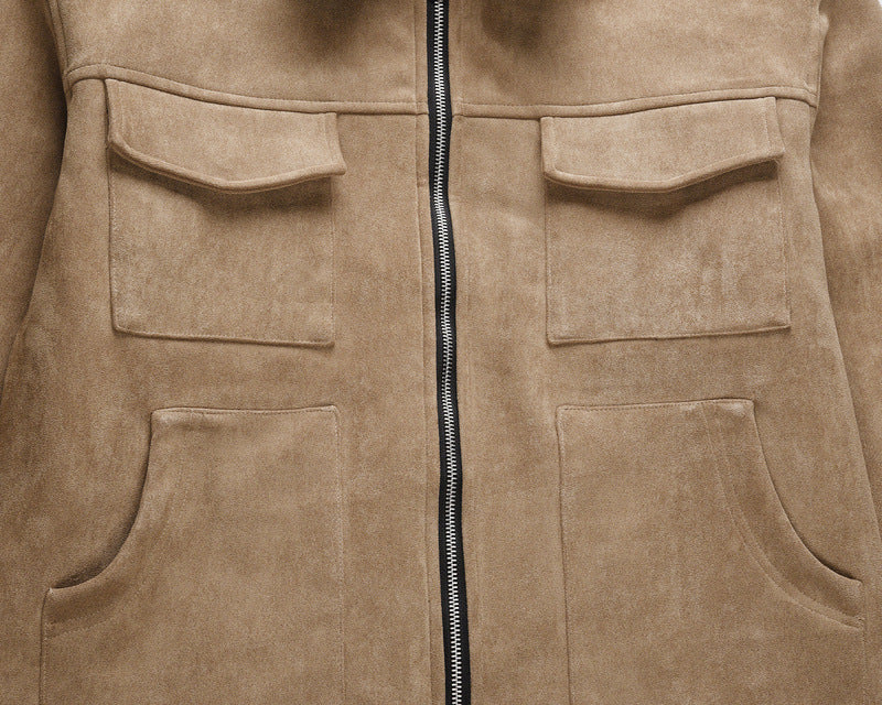 This modern gray suede jacket embodies sophistication and utility, making it a timeless wardrobe essential. Its sleek design, paired with premium suede material, ensures both comfort and a polished look. Perfect for casual outings or elevating your smart-casual attire, this jacket is as versatile as it is stylish.