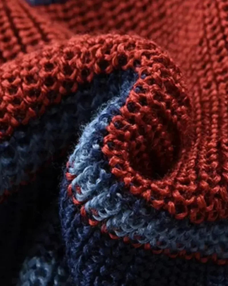 This vintage knit cardigan combines bold stripes with a timeless silhouette, offering effortless warmth and standout style.
